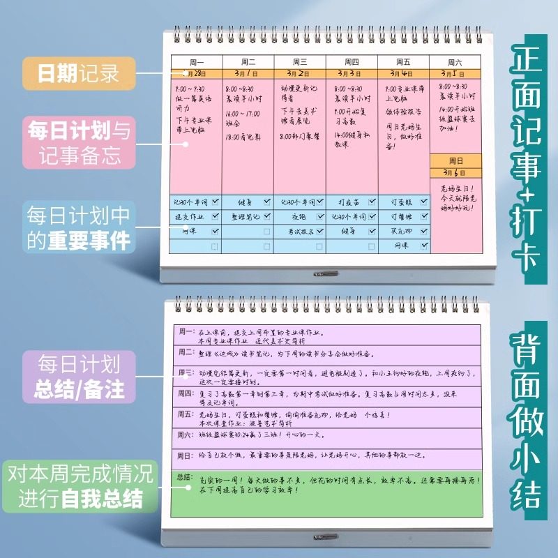 您的位置: 2025年打卡周计划本日历记事本可立减肥计划表台历学生暑期每日计划表时间管理效率手册工作日程记录自律神器