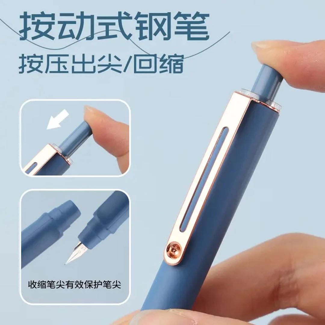 高颜值正姿笔握按动钢笔学生专用练字写作业彩色笔身0.38mm笔尖JY