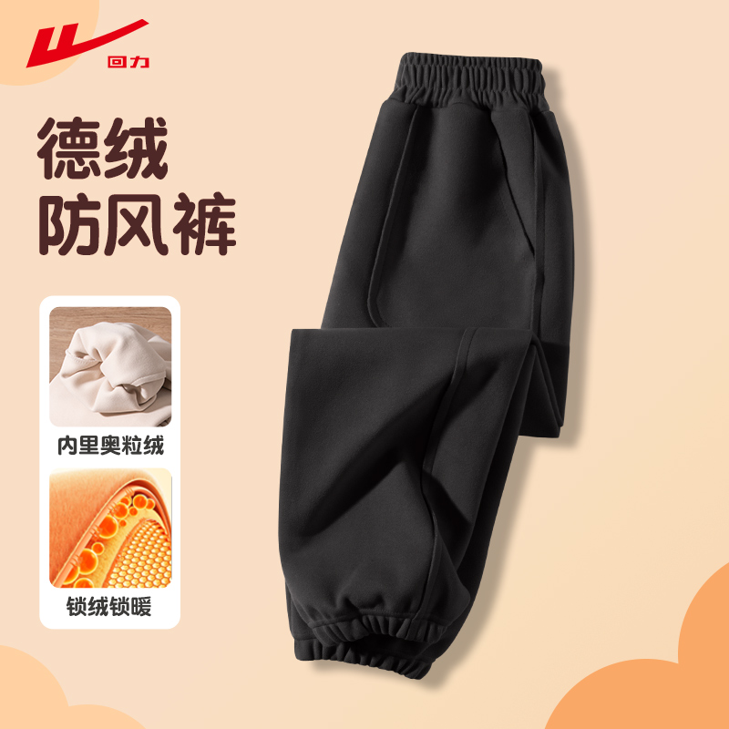 > 回力女童加绒裤子男童冬季加厚长裤保暖冬装新款中大童仿羊羔绒裤