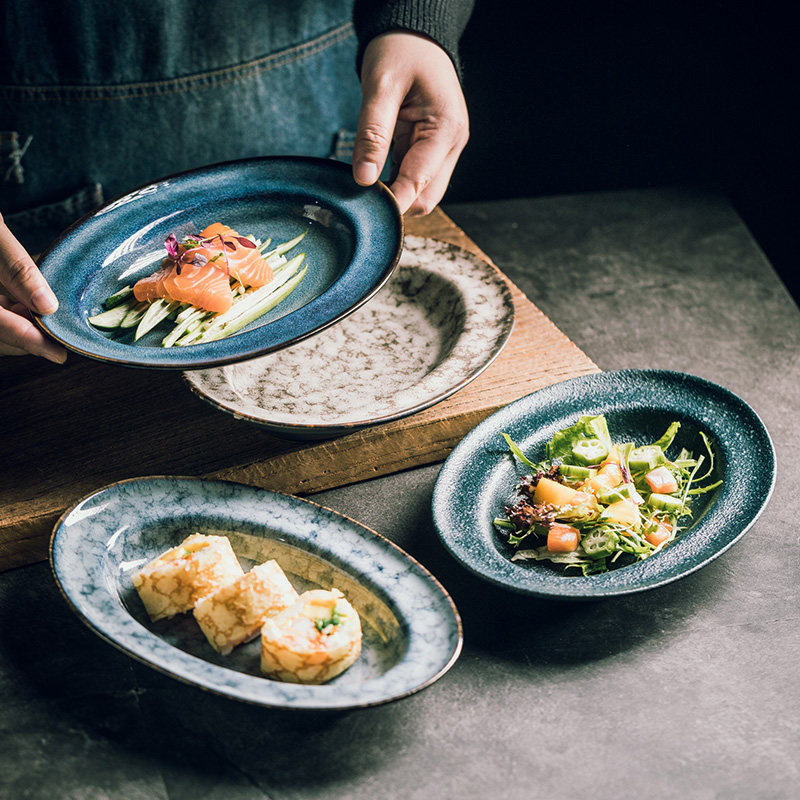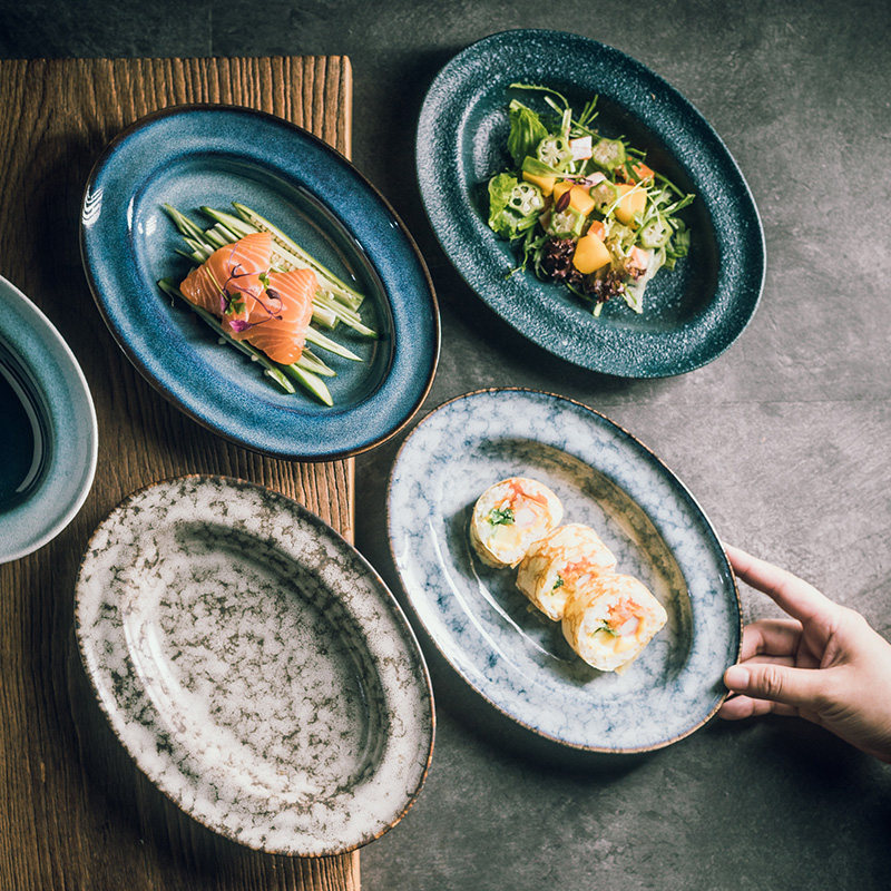 您的位置: 高颜值盘子凉菜专用餐具盘减肥餐盘商用家用菜盘椭圆盘复古创意