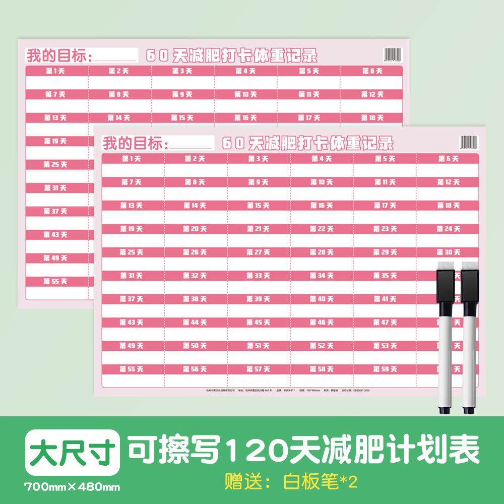 您的位置: 减肥体重记录墙贴励志自律打卡计划表格一百天60天运动激励神器