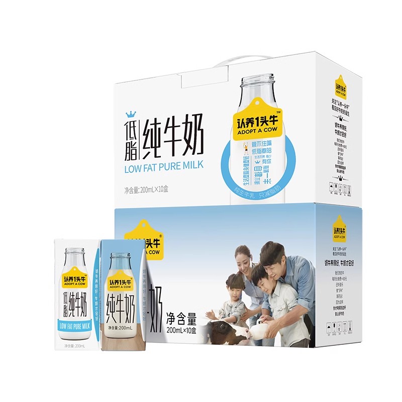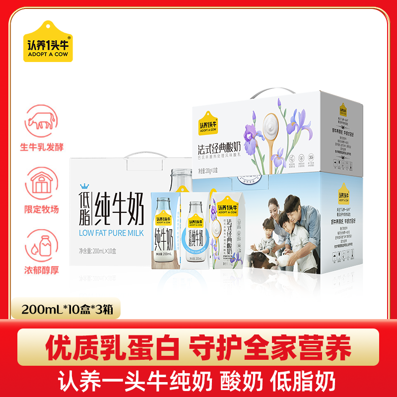【渠道推荐】认养一头牛全脂纯牛奶/低脂纯牛奶200mL*10盒*3箱