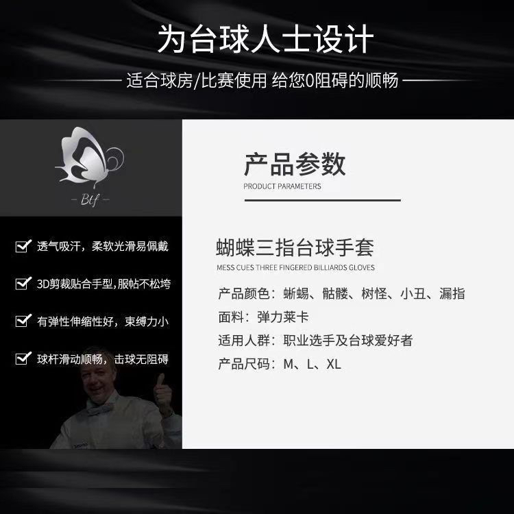 淘宝天猫butterfly蝴蝶台球职业三指职业专业手套防汗滑btf露指手套优惠券折扣价格–彩云间