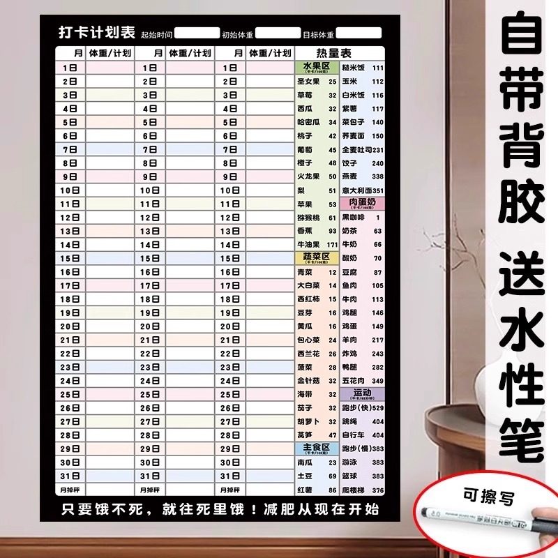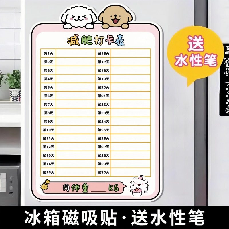 30天瘦身计划磁吸记录表减肥打卡神器可擦写减肥打卡记录表计划表