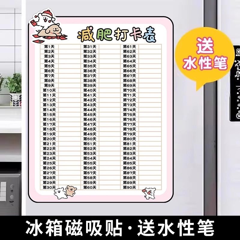 您的位置: 30天瘦身计划磁吸记录表减肥打卡神器可擦写减肥打卡记录表计划表