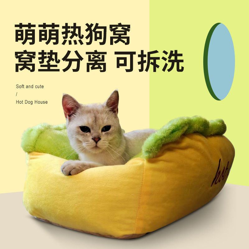 热狗狗狗窝网红个性汉堡包香蕉猫窝狗狗睡垫可爱秋冬深度睡眠狗窝