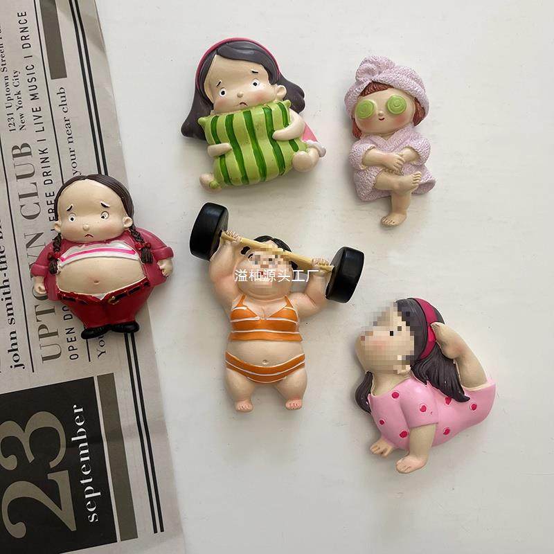 我要减肥举重锻炼娃娃冰箱贴 磁贴可爱卡通立体装饰贴磁力贴创意