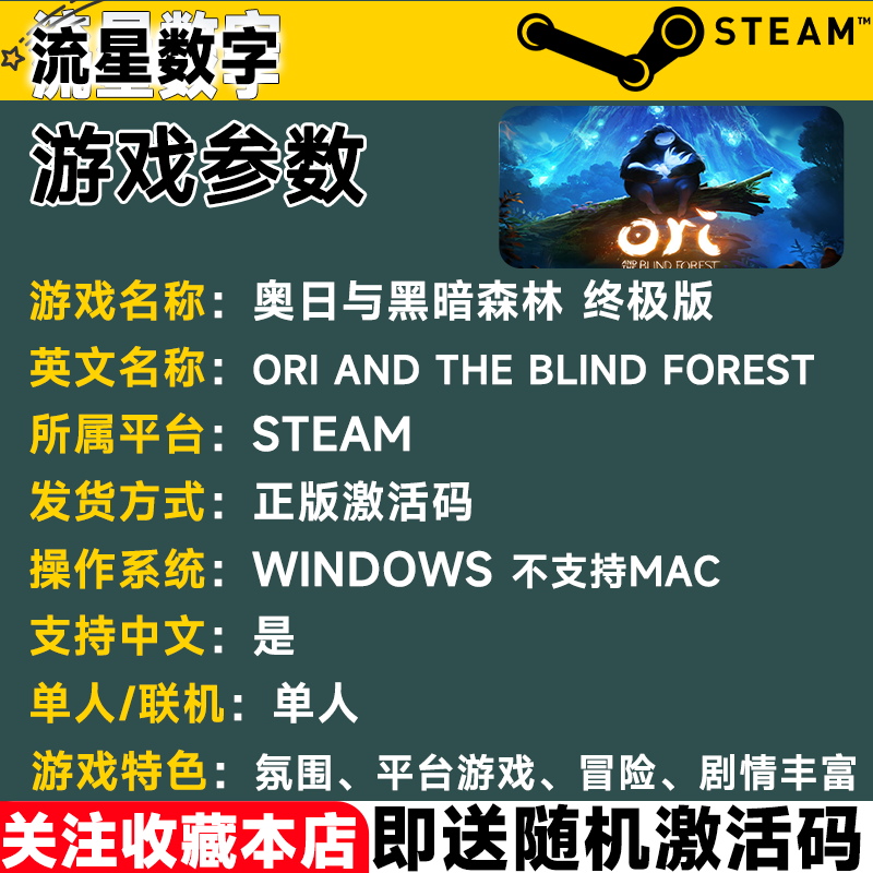 您的位置: Steam正版国区KEY 奥日与黑暗森林终极版 奥日 激活码CDKEY