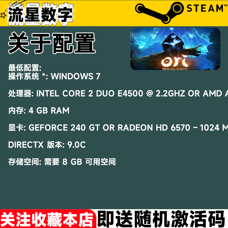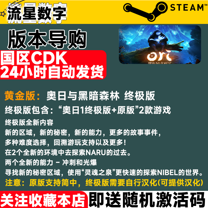 Steam正版国区KEY 奥日与黑暗森林终极版 奥日 激活码CDKEY