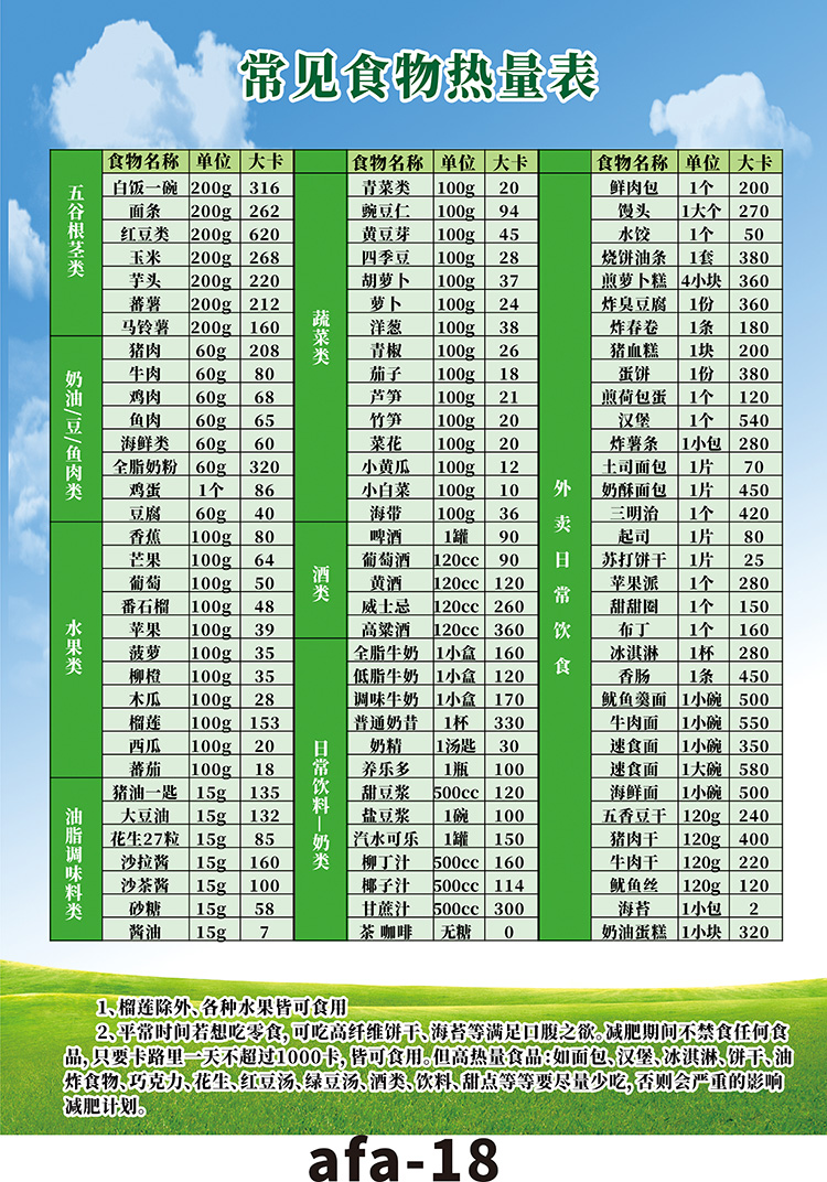 淘宝天猫常见食物热量表合理膳食减肥饮食热量参考墙贴画海报医院挂图优惠券折扣价格–彩云间
