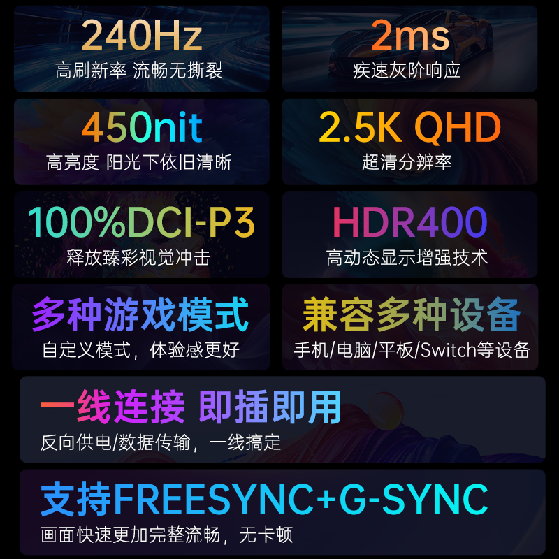 爱国者17.3英寸电竞便携显示器2.5k高刷笔记本便携屏witch便携屏