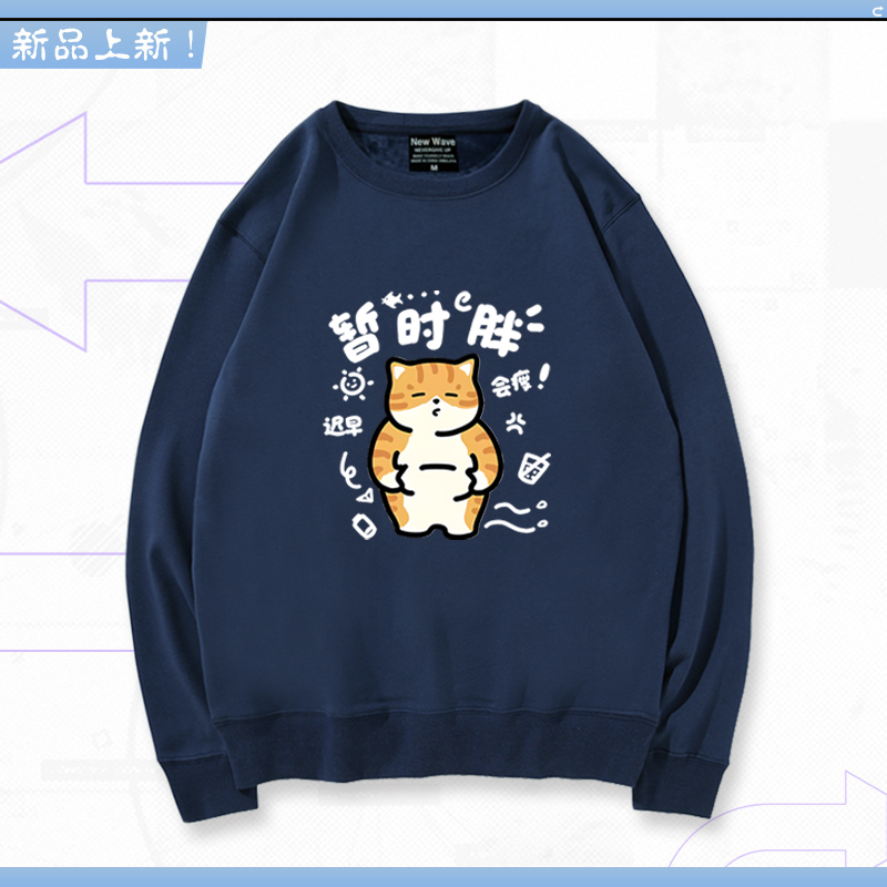 暂时胖减肥小猫可爱男女生秋冬季休闲百搭宽松圆领加绒卫衣LN