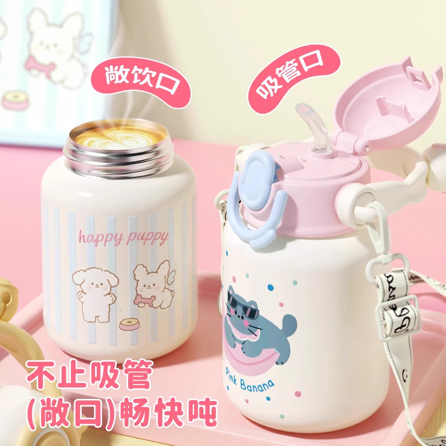 淘宝天猫ins高颜值女生可爱保温杯2025新款食品级304大容量硅胶吸管保温杯优惠券折扣价格–彩云间