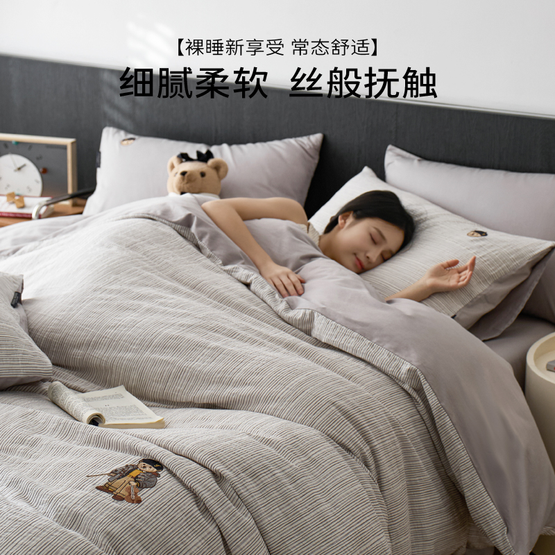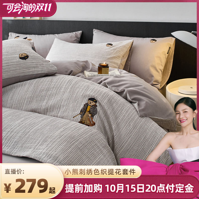 > 【今晚8点付定金】TeenieWeenie小熊刺绣提花条纹纯棉四件套