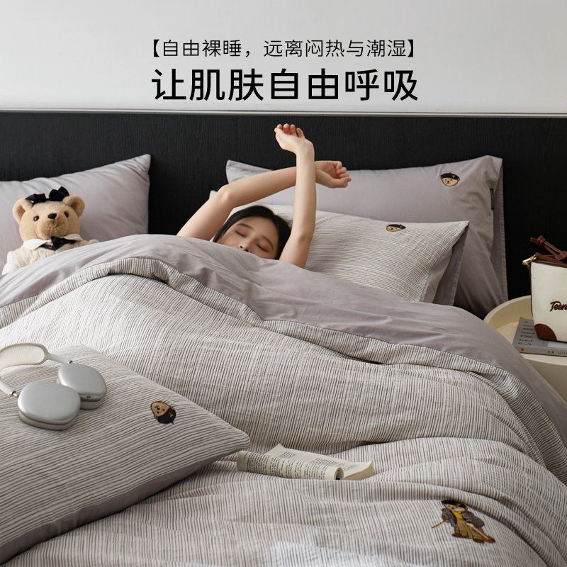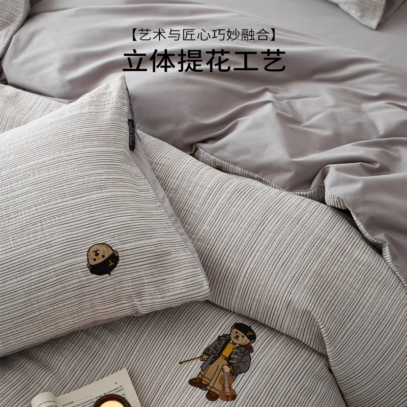 【今晚8点付定金】TeenieWeenie小熊刺绣提花条纹纯棉四件套