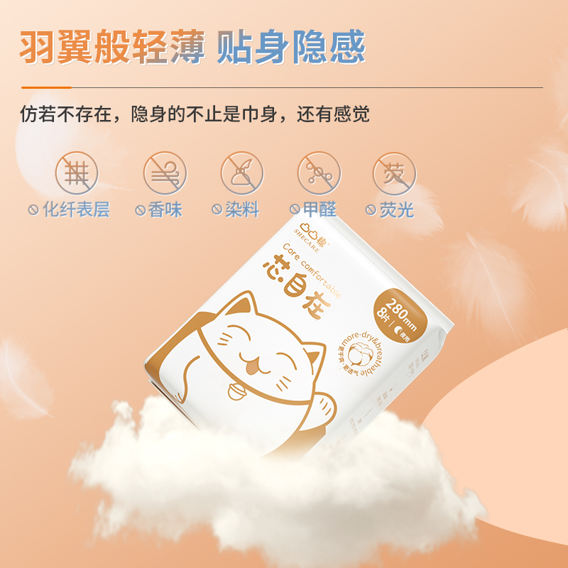 【包邮下拉详情领券后39任选6件】自由点日夜用卫生巾超薄姨妈巾