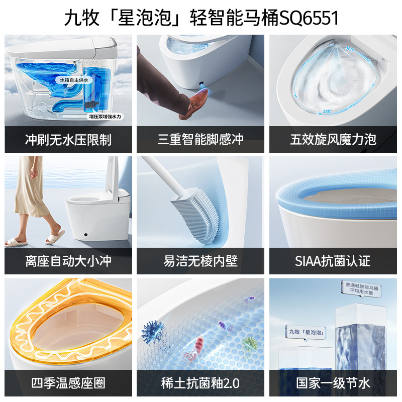 淘宝天猫九牧卫浴零压旋风刷圈泡脚感翻盖翻圈轻智能马桶家用坐便器SQ6551优惠券折扣价格–彩云间