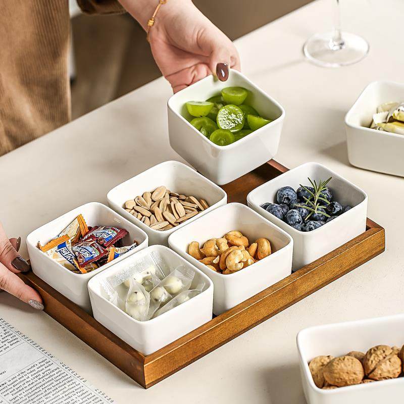 您的位置: 家用果盘零食盘分格小吃碟茶点点心拼盘火锅陶瓷蘸料碟减肥早餐盘