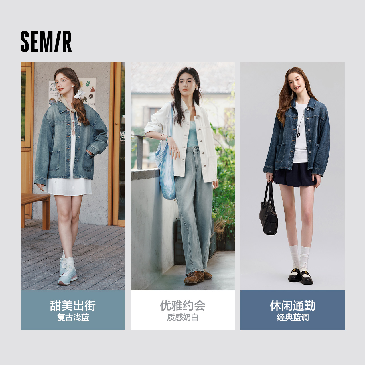 > 森马牛仔外套女翻领上衣女装牛仔衬衫休闲2025春季新款白色夹克