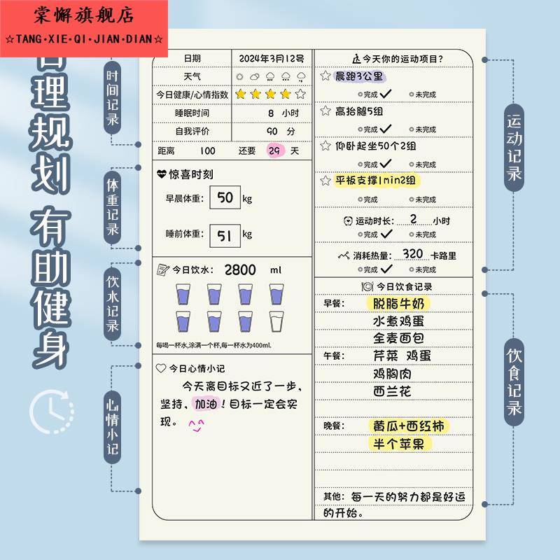 淘宝天猫百日健康每日饮食体重记录自律打卡本瘦身计画本健身减肥日记日历减脂训练运动计画表食物热量管理笔记本子优惠券折扣价格–彩云间