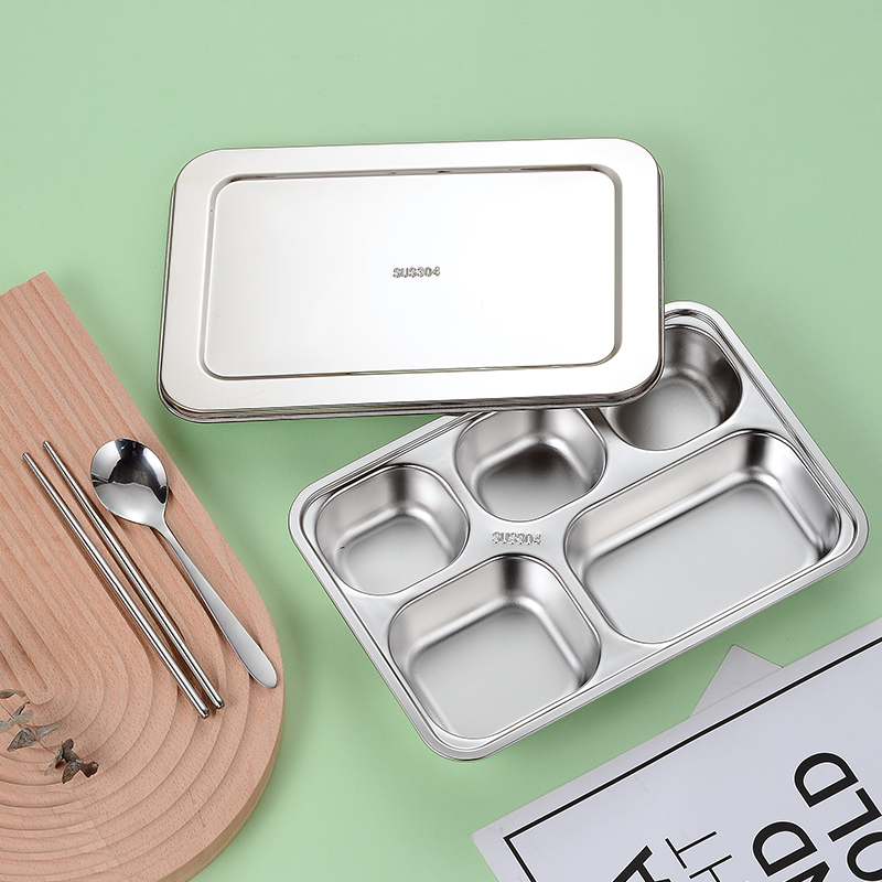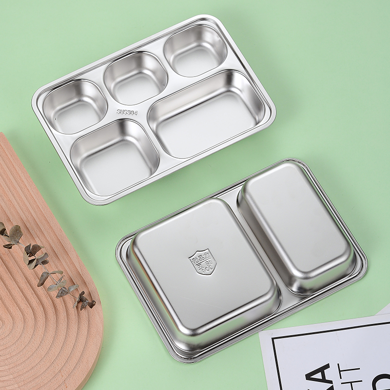 您的位置: 304不锈钢盘 学生饭盘中式带盖分格简约餐盒食堂三格减肥餐盘套装