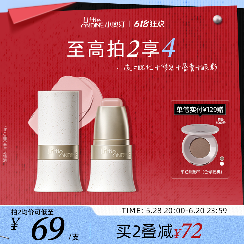 > [618立减]小奥汀多用棒水润丝滑腮红修容口红唇膏四合一多用膏