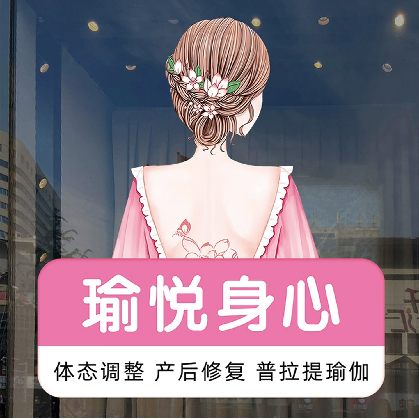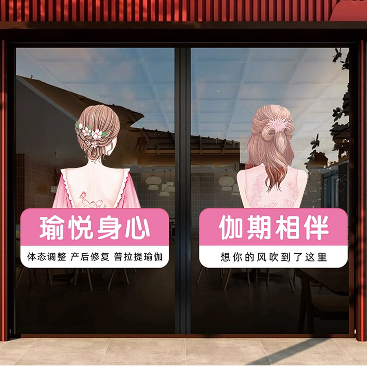 粉色普拉提瑜伽馆玻璃门贴纸美容院减肥健身房舞蹈养生馆装饰海报