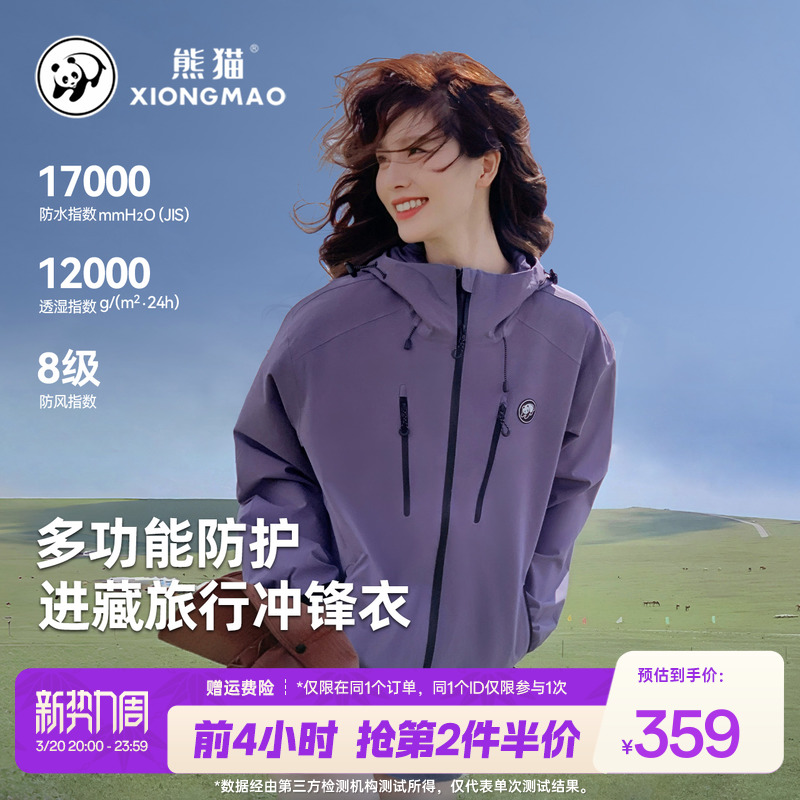 淘宝天猫【果宝】熊猫户外服硬壳紫色冲锋衣外套男女2025新款防水防风三防优惠券折扣价格–彩云间