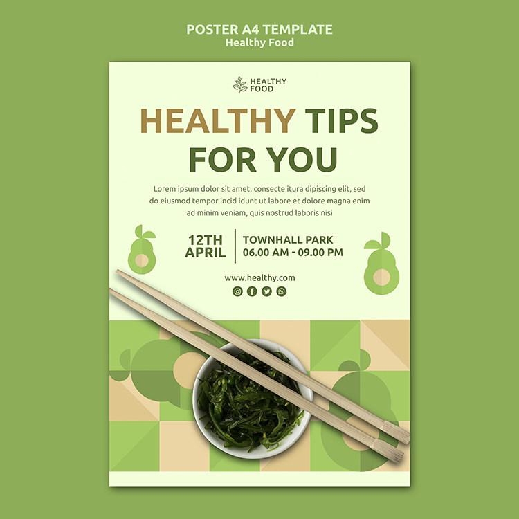 健康绿色牛油果轻食减肥营养食品宣传海报模板平面设计ps模板400