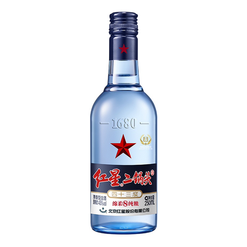您的位置: 红星二锅头蓝瓶绵柔8纯粮43度250mL单瓶装清香型白酒纯粮口粮酒