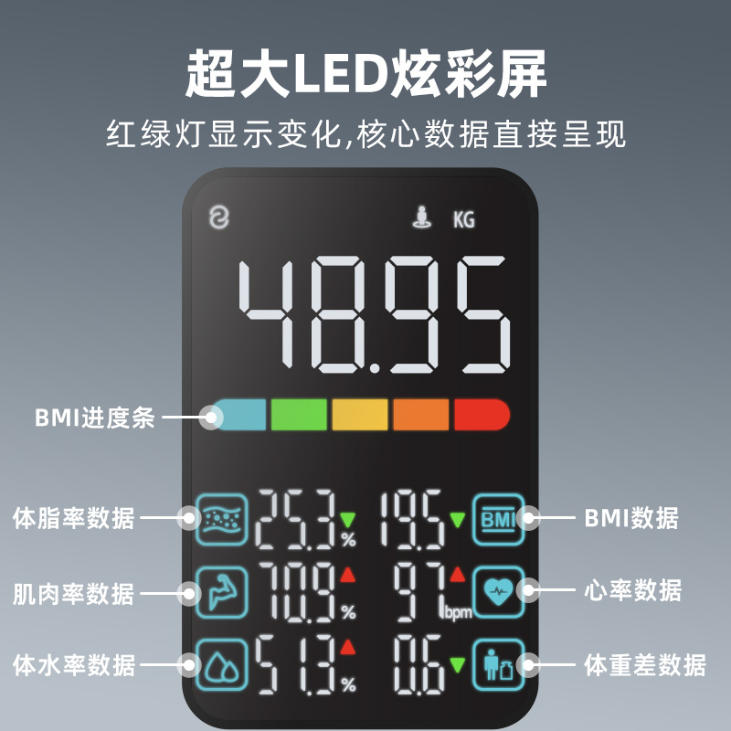 LEFU乐福彩显体脂秤体重秤减肥人体家用称重专用智能精准大电极片