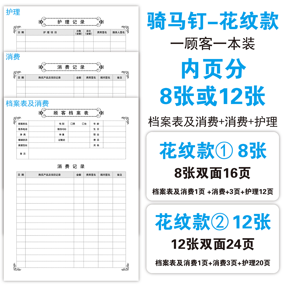 您的位置: 2、骑马钉-花纹款-1 美容院顾客档案一人一本高端养生馆vip医美瑜伽私教会员客户资料护理消费记录单减肥定制