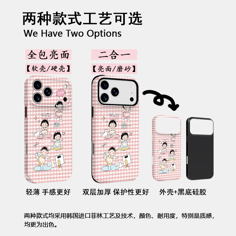 格纹减肥小丸子 适用苹果17promax新款iPhone16手机壳女生1314高级感小众不撞款15防摔二合一菲林保护套plus