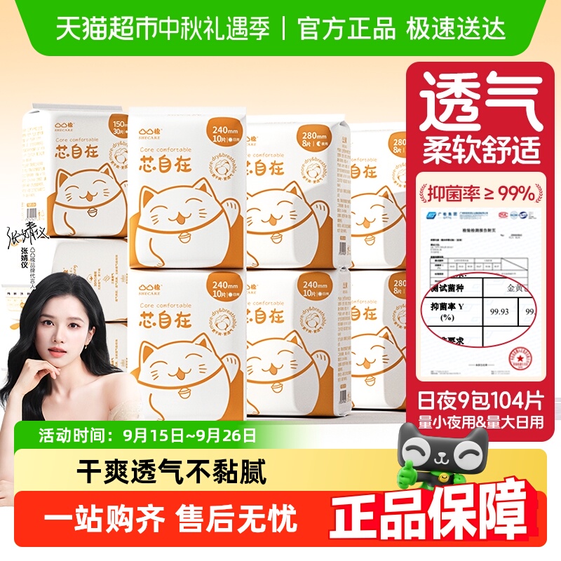 > 凸凸棉日夜组合卫生巾轻薄亲肤9包104片姨妈巾透气【官方正品】