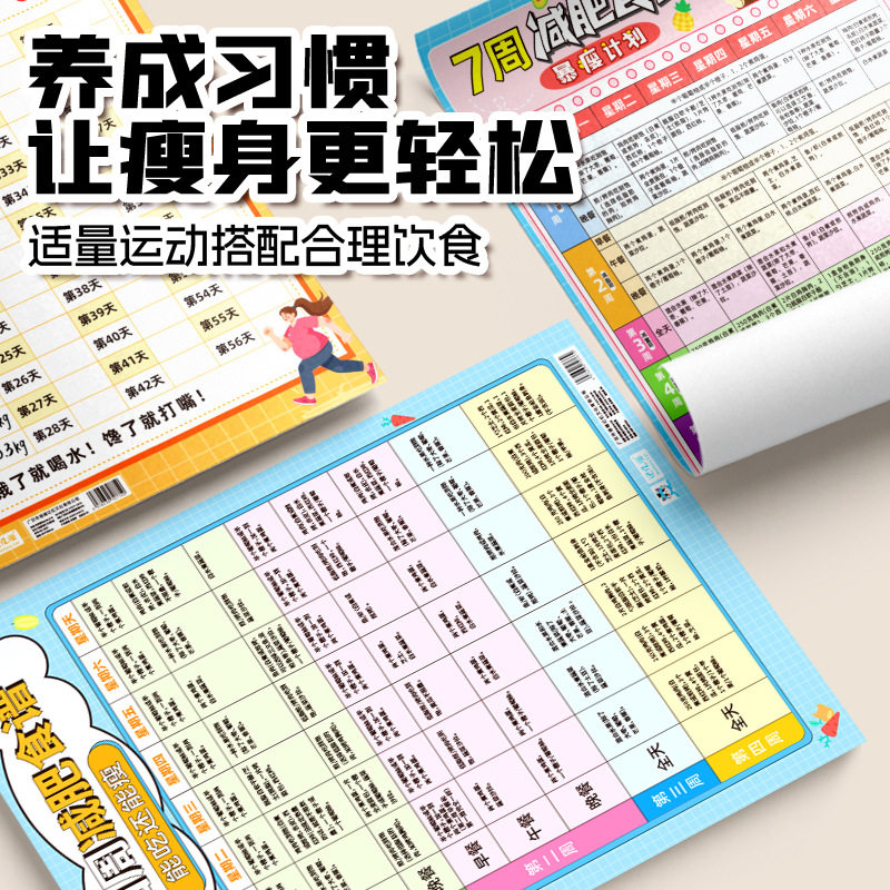 淘宝天猫减肥打卡计划表减肥食谱表打卡记录表健身运动励志计划墙贴优惠券折扣价格–彩云间