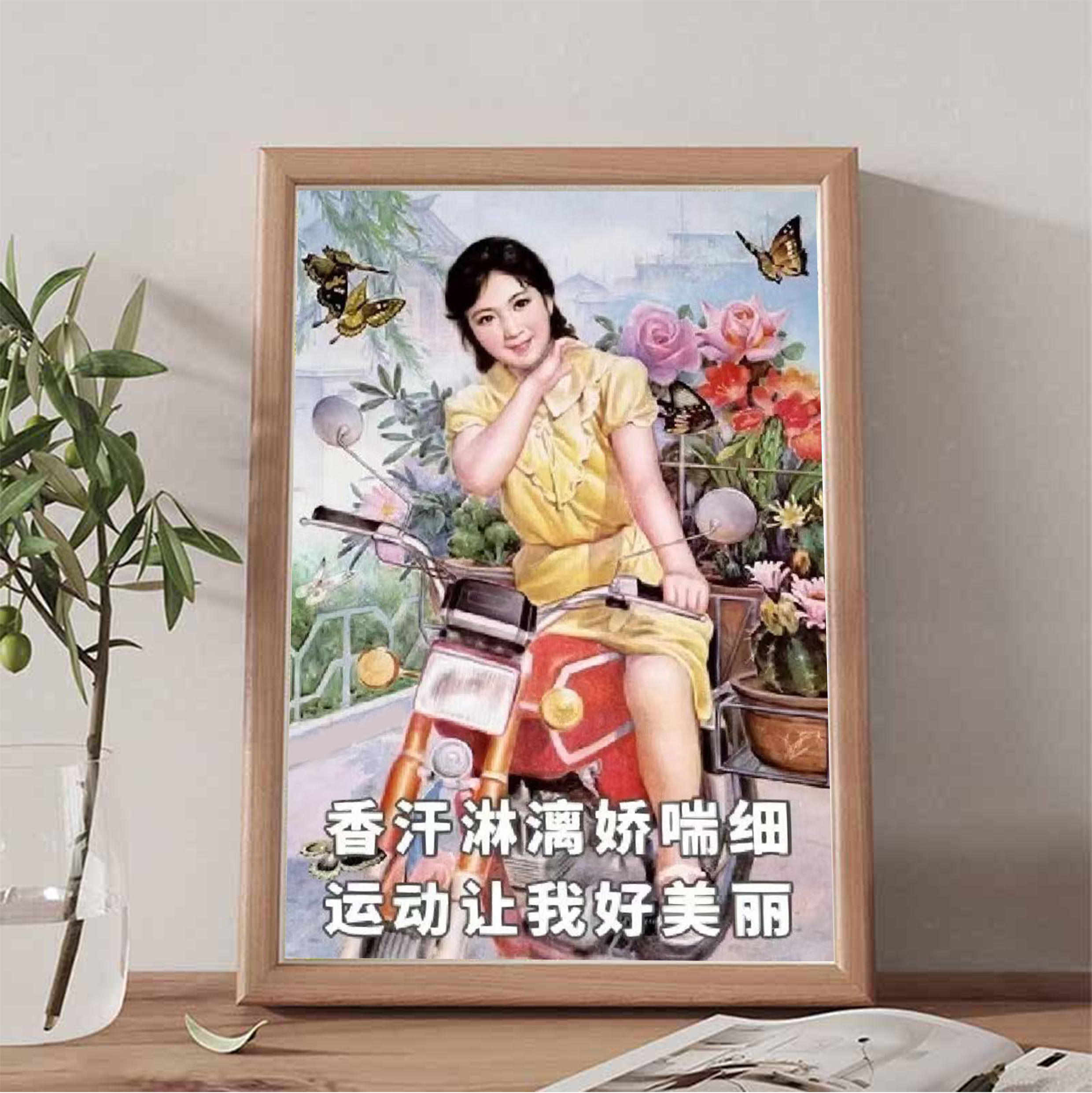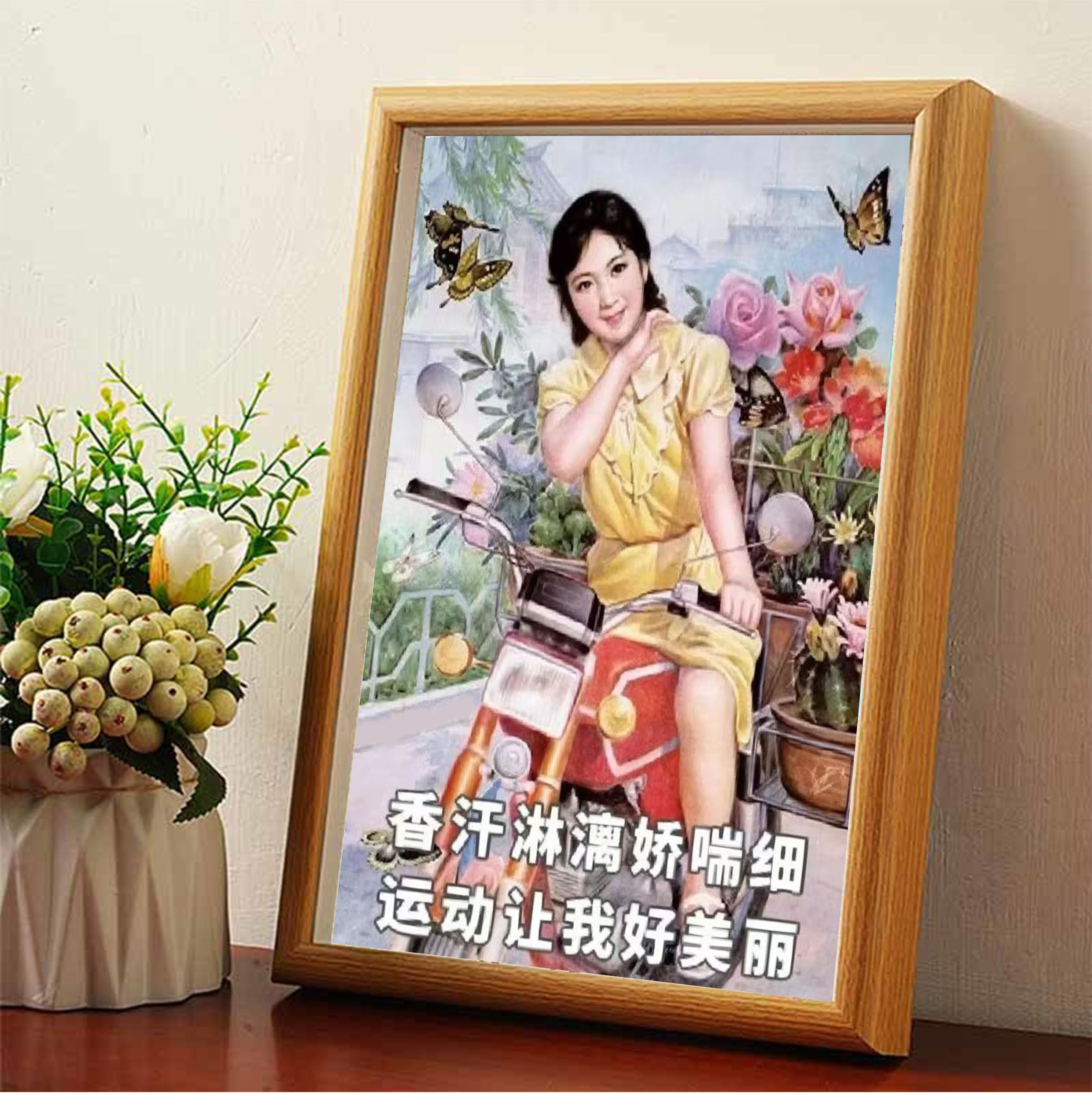 运动让我好美丽减肥励志搞笑实木相框装饰画桌面摆件艺术画挂墙