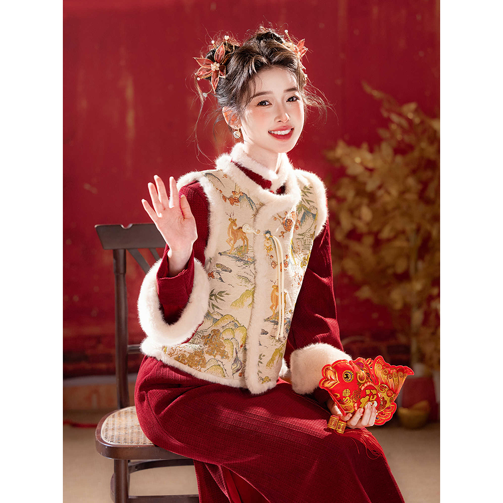 您的位置: 【东禧-加绒】潇夫人自制红色旗袍敬酒服拜年服新年新中式订婚套�
