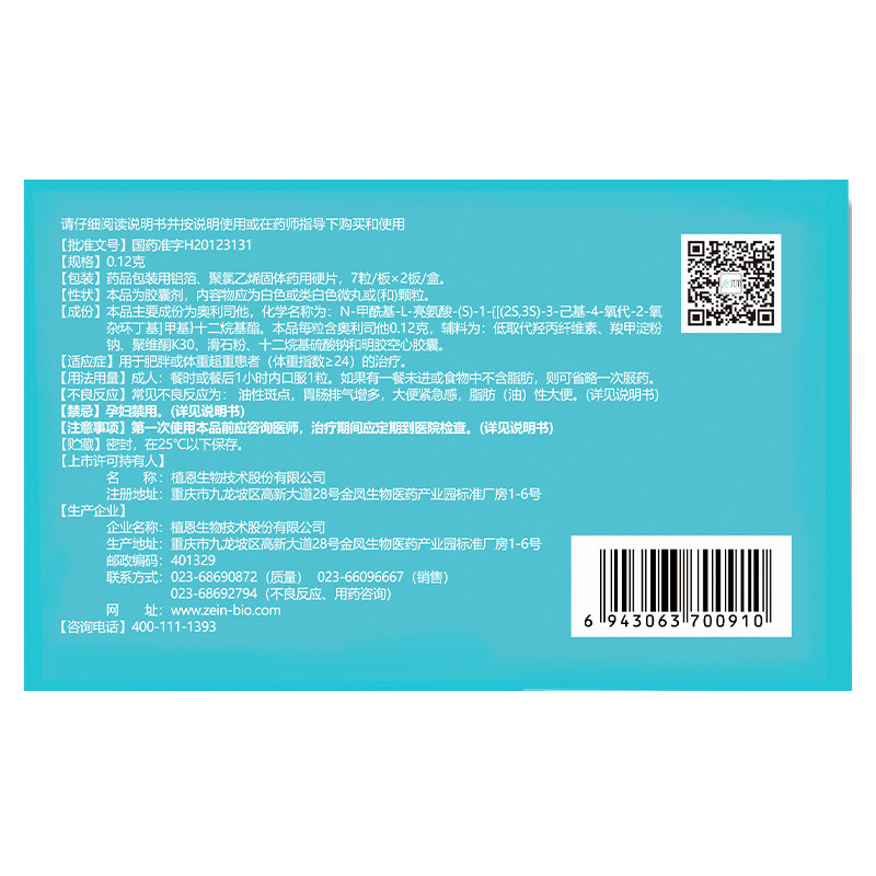 艾丽奥利司他胶囊0.12g*14粒/盒减肥官方旗舰店正品瘦身排油燃脂