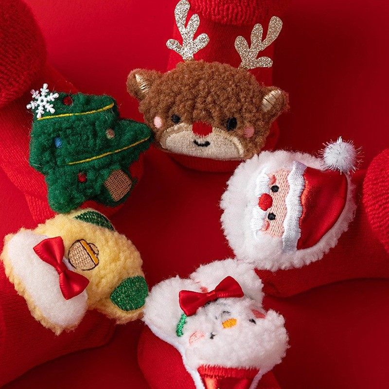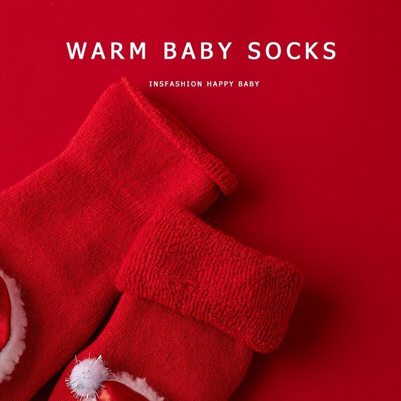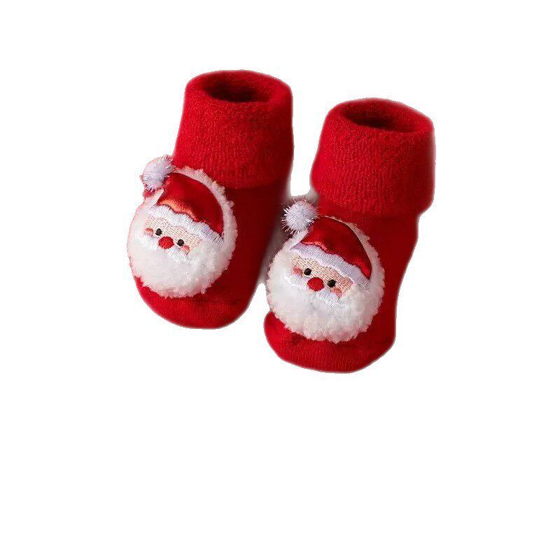 【新品】冬季母婴袜生婴儿防滑地板加厚加绒宝宝新年红色学步袜跨