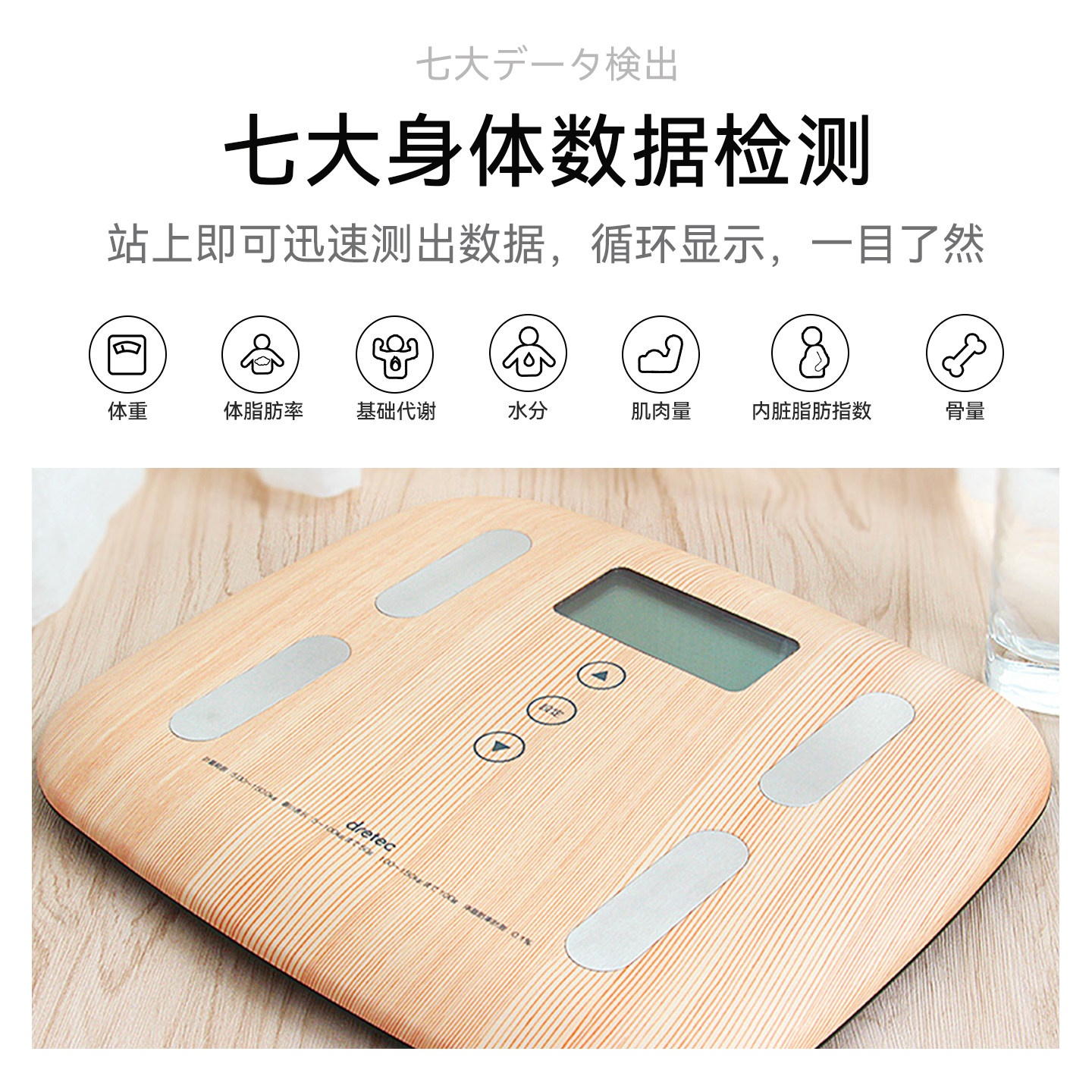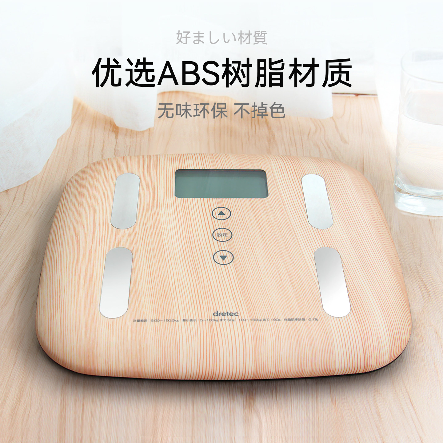 日本dretec多利科体脂秤家用电子体重秤便携木纹减肥专用智能精准