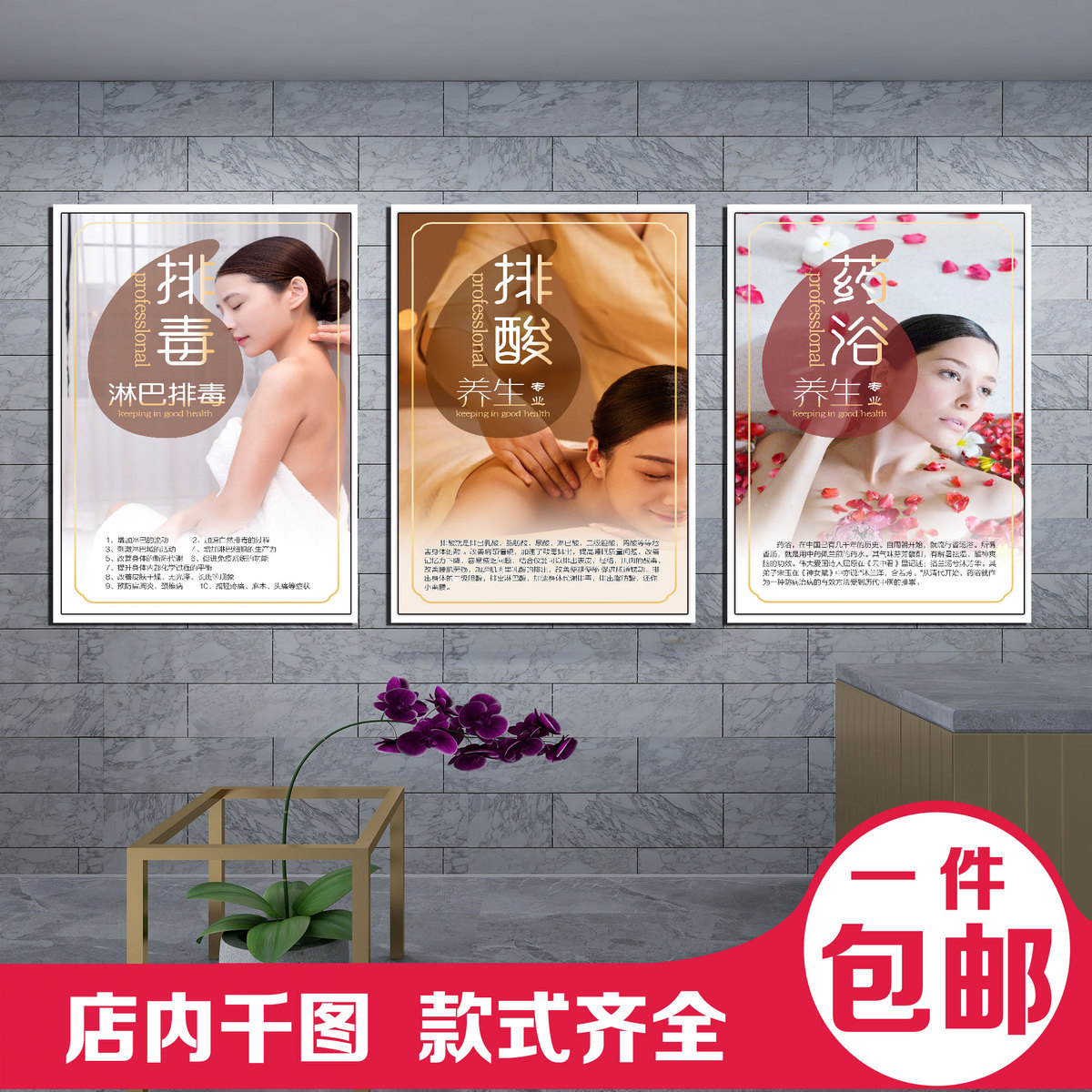 淘宝天猫美容院养生拨筋海报排酸装饰挂图瑶浴kt板拔罐针灸贴画按摩减肥kt优惠券折扣价格–彩云间