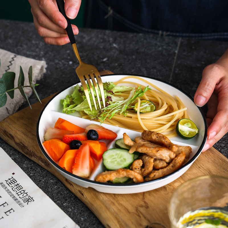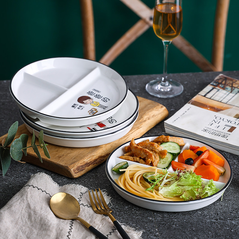 您的位置: 211减脂餐盘分格圆形三格陶瓷盘子减肥水果盘早餐大人儿童分餐盘
