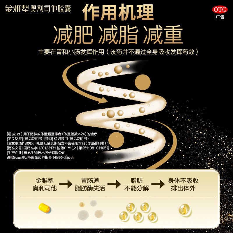 金雅塑奥利司他胶囊减肥药120mg国药准字排油抗肥胖燃脂瘦身
