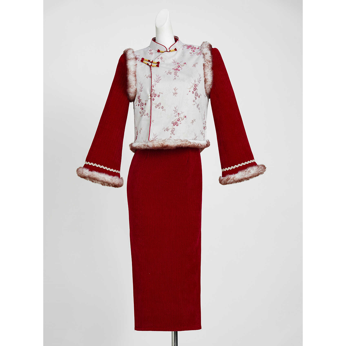 【昭愿-加绒】潇夫人自制新中式红色旗袍马甲国风气质改良百搭套�