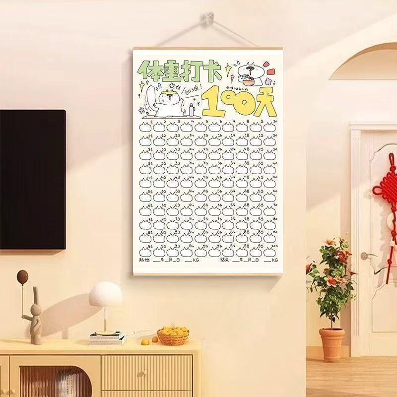 您的位置: 体重挂画减肥监控打卡每天100记录自律免打励志无痕挂轴装饰画