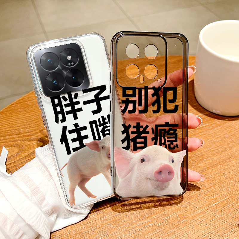 别犯猪瘾适用小米15spro手机壳14ultar自律note13搞怪12情侣11红米k80新款k70至尊版k60减肥50胖子住嘴40套30