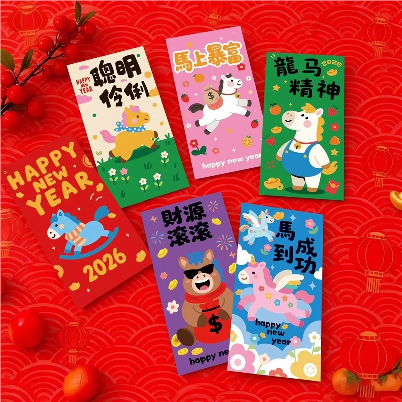 6个装马年红包 款式随机 2026款卡通手绘福马萌马系列平面印刷