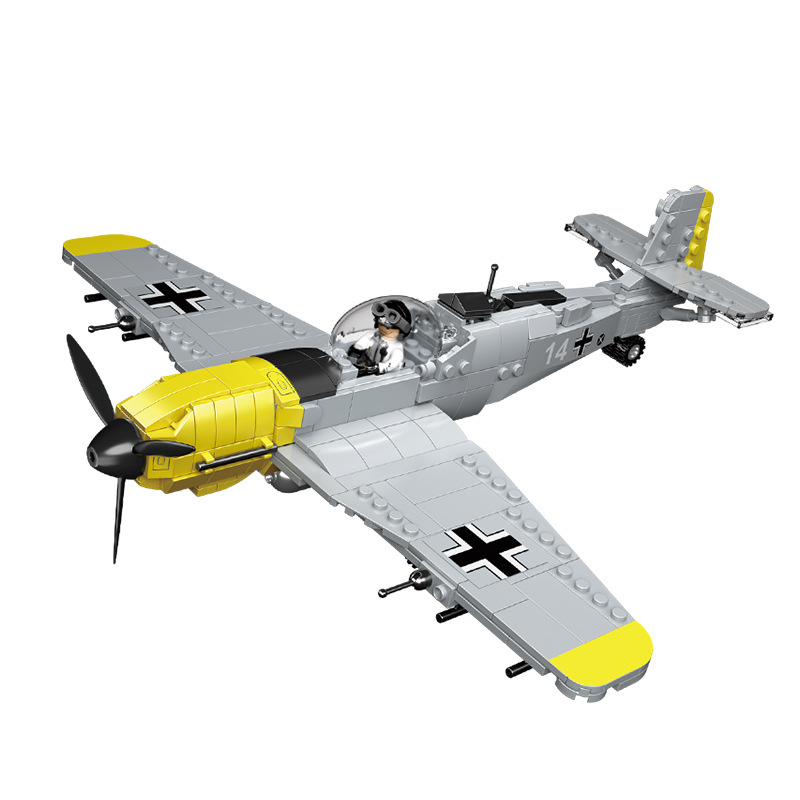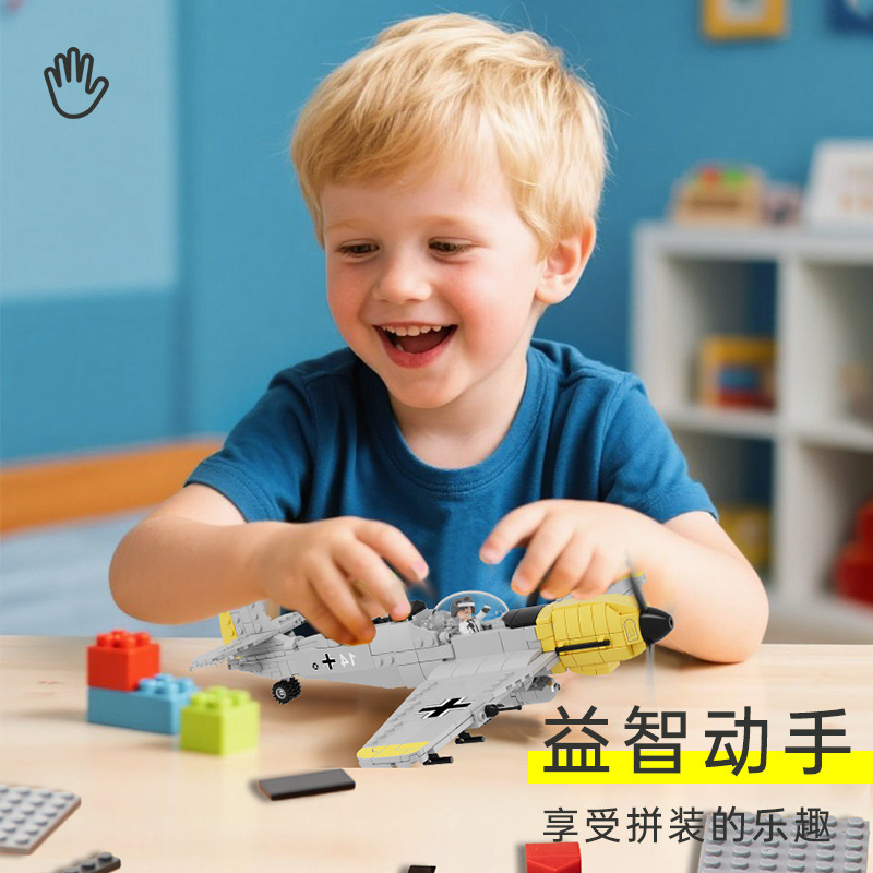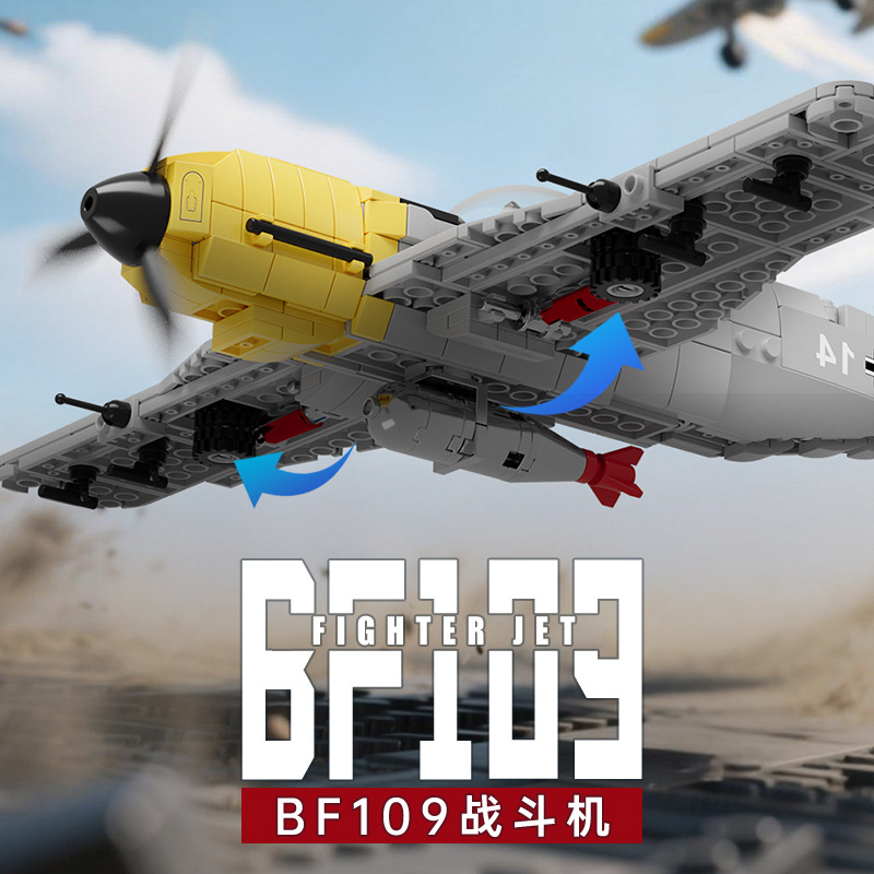 念动力BF109小颗粒积木摆件军事模型战斗飞机儿童益智玩具礼物