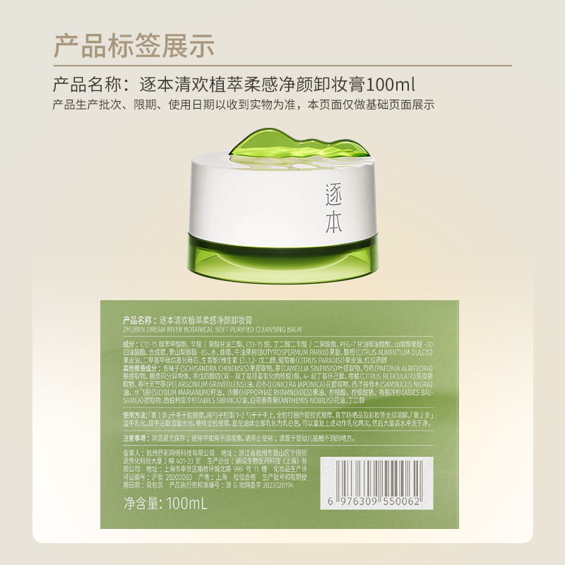 > 逐本卸妆膏清欢植萃净颜100ml面部深层清洁小玉罐易乳化冲洗