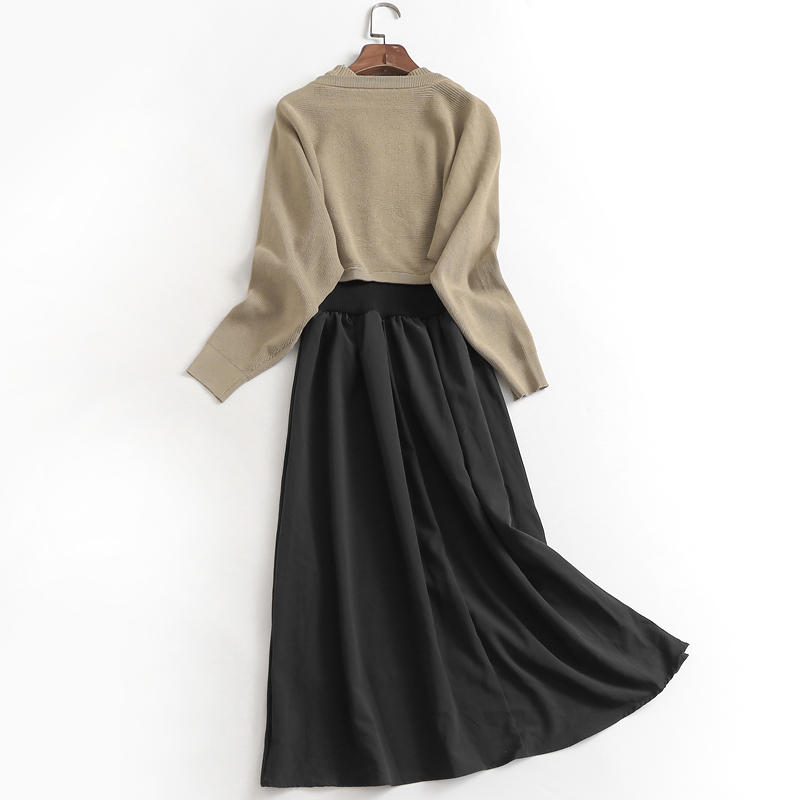 K789针织两件套收腰显瘦中长款背心连衣裙女春夏2023新款赫本裙子